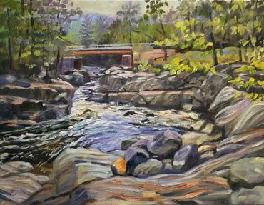 I am a realist painter living in Augusta, Maine, and I enjoy painting (mostly plein air) scenes that tell a story to the viewer about what I experienced in the moment. I especially love painting elements with a commanding presence such as rocks, boats, architecture, reflections in water, and shadows with interesting shapes and patterns. I also write and illustrate children’s pictures story books.